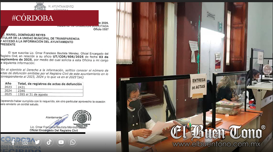 La magnitud de este ingreso para las arcas municipales se hace evidente al revisar las cifras oficiales proporcionadas por el Registro Civil local. Solo en lo que va del 2025, hasta el 31 de agosto, se han emitido 1,595 actas de defunción, lo que significa que la Tesorería del Ayuntamiento de Córdoba ha recaudado aproximadamente 197,780 pesos solo por este concepto en ocho meses.