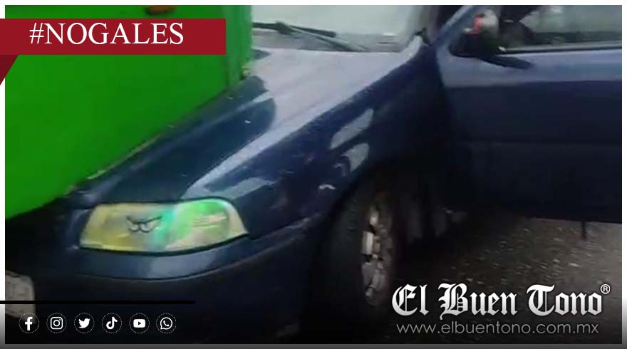 Nogales.- Un automóvil Volkswagen Pointer azul terminó incrustado detras de un autobús de la línea Metropolitano, al no medir su distancia vial y chocar por alcance al circular sobre el bulevar Bendito Juárez, en la colonia Vista Hermosa.