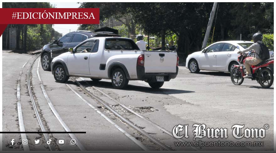 Fortín.- La carretera que cruza la vía férrea en la zona conocida como Crucero Nacional, registra graves daños en la cinta de asfalto, tiene baches profundos, hundimientos y laceraciones que afectan el tránsito constante de autobuses y vehículos pesados, sin que exista intervención del ayuntamiento.