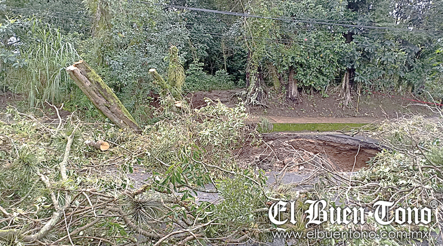 El problema se suscitó a media cuadra del campo deportivo de la comunidad; los colonos dijeron que las lluvias recientes ocasionaron un deslave, se reblandeció la tierra y se generó el socavón de cinco metros de largo por uno de ancho, la profundidad es de tres metros, “el drenaje no soportó la presión y eso hizo que el problema se diera en el área”.