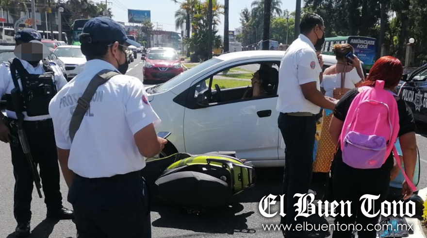 Al llegar al cruce con Sur 29, el chofer de un auto compacto marca Chevrolet Spark de color blanco, placas YKB-28-25 de Veracruz, quiso cambiar de carril sin las debidas precauciones y provocó que la moto se le estrellara. Como resultado del fuerte encontronazo, la joven salió “volando” un par de metros hacia el frente, hasta que acabó tirada sobre el pavimento, por lo que sufrió múltiples lesiones y fue necesario el arribo de paramédicos de Protección Civil.