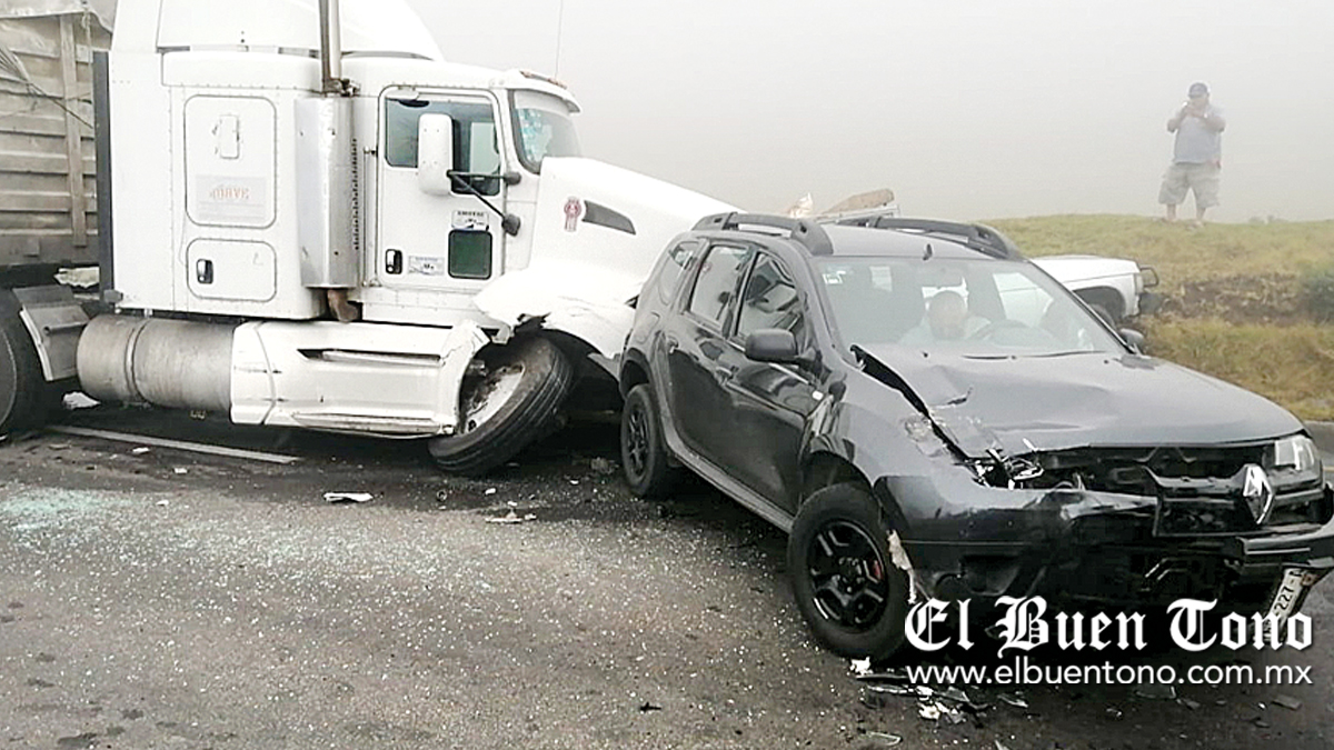 A las 13:30 horas se registró el primer accidente, luego de que un tráiler Kenworth Kenmex, blanco, placas 060-AS-7 del SPF, se estrelló atrás de otro vehículo con doble remolque. Fue la neblina lo que causó que en el kilómetro 227, el chofer de otro tractocamión Kenworth perdiera visibilidad y embistiera a una camioneta Renault negra y una Nissan tipo Pick Up. Ninguno resultó herido, aunque las tres unidades y un camión International, que alcanzó a chocar con el tráiler se dañaron.