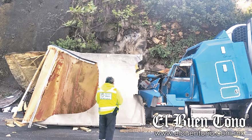 MALTRATA.- Un accidente vehicular ocurrió en la tarde de ayer en la autopista Puebla-Orizaba, a la altura del trébol de Maltrata, cuando un tráiler que se quedó sin frenos chocó por detrás a otro tráiler.