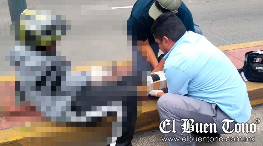 Debido al golpe, el motorista presentó fracturas de tibia y peroné expuestas por lo que el personal de Águilas Negras lo atendió y estabilizó hasta que arribaron paramédicos de la Cruz Roja de Orizaba que trasladaron al joven a un hospital.