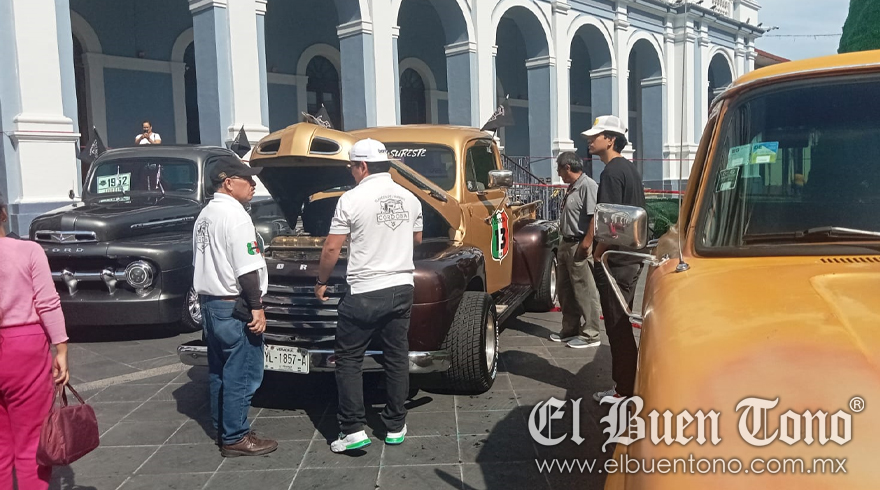 Desde las 10:00 horas de hoy los integrantes del Club Clásicos del Sureste Córdoba instalaron diversas unidades en la plaza de armas del Centro Histórico donde las familias se aglomeran para apreciar dichos autos.