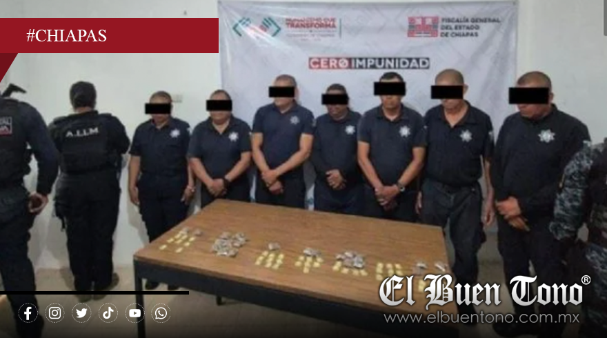 La Secretaría de Seguridad del Pueblo confirmó la aprehensión de los agentes Misael “N”, Juan “N”, Samuel “N”, Hugo “N”, Óscar “N”, Roberto “N” y Jacqueline “N”, tras un operativo encabezado por la Fuerza de Reacción Inmediata Pakal (FRIP), Guardia Estatal Preventiva y la Agencia de Investigación e Inteligencia Ministerial. A los uniformados se les aseguraron 46 dosis de metanfetamina y 23 bolsitas con marihuana, lo que refuerza las denuncias ciudadanas sobre la infiltración del crimen en los cuerpos de seguridad.