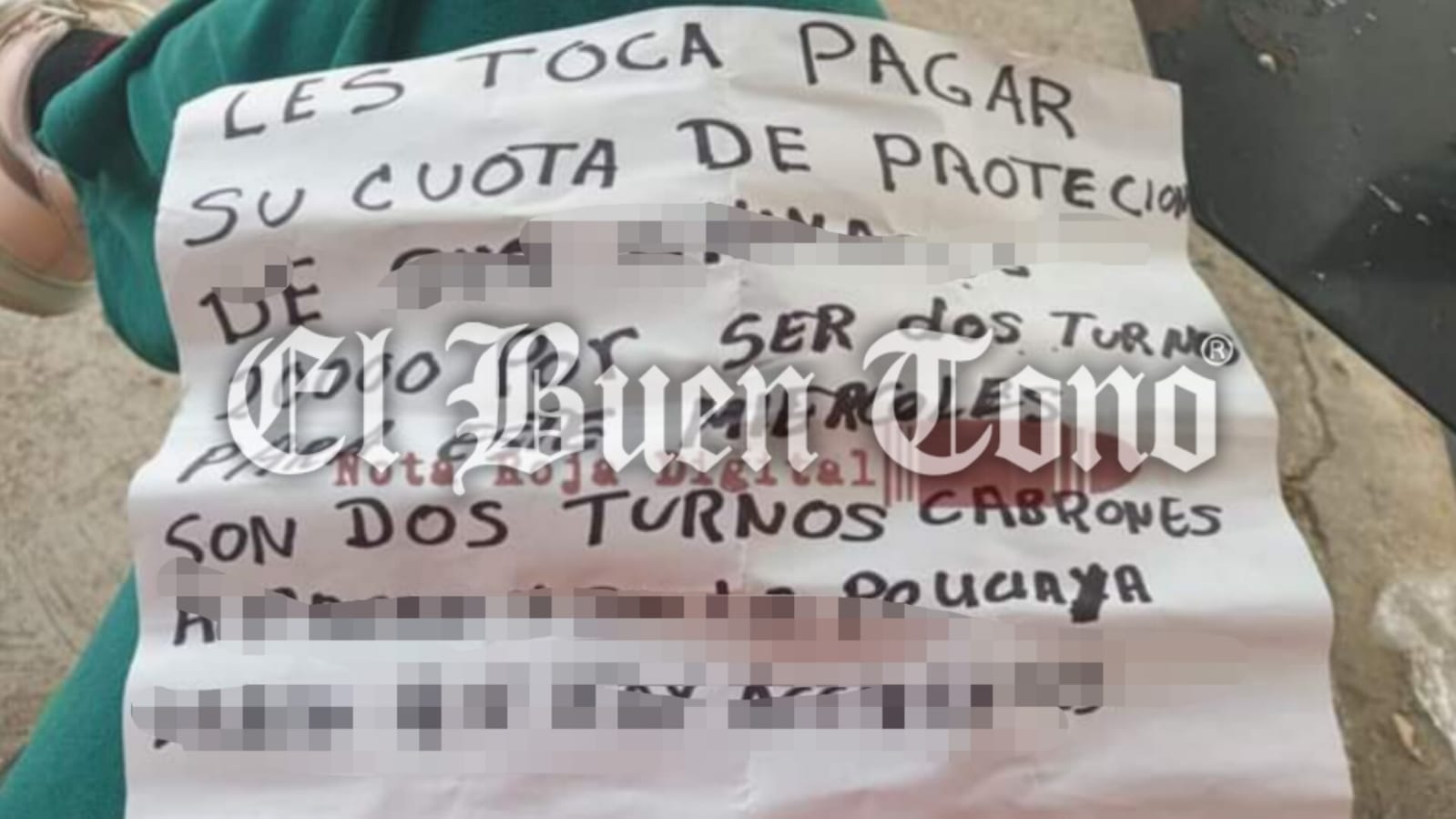 “A pagar y sin la policía, ya saben que hay accidentes”, dice el texto de amenaza de “cobro de piso”.
