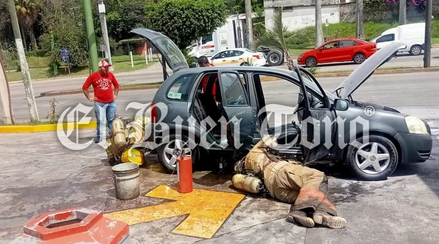 Fortín.- Empleados de una gasolinera, ubicada a un costado del bulevar Córdoba-Fortín, evitaron el incendio total de un automóvil que sufrió un corto circuito al circular por esa zona.