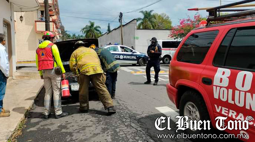 Fortín.- Un cortocircuito provocó que un automóvil Nissan Tsuru, propiedad de una empresa de telecomunicaciones, estuviera a punto de incendiarse la mañana de ayer  lunes en la calle 7 y avenida 3.