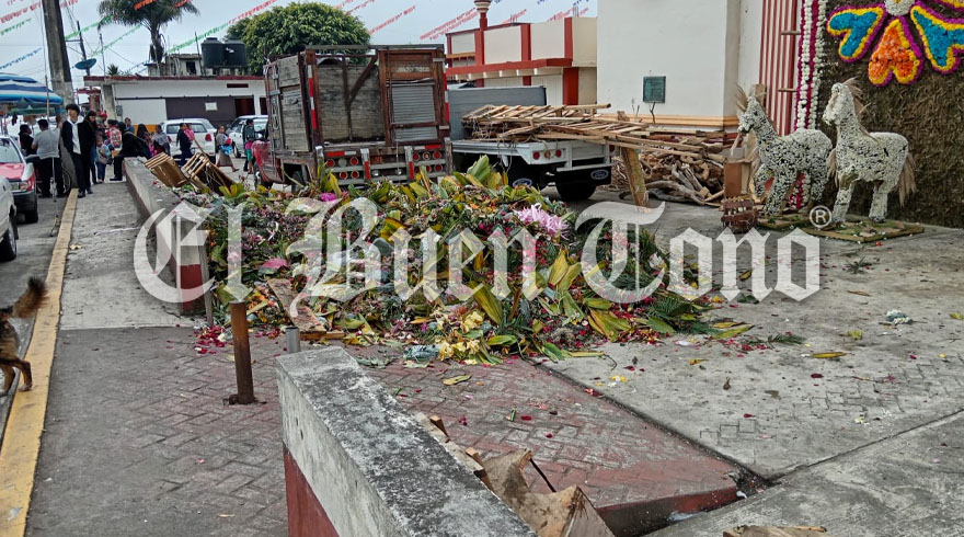 La Perla, Ver.- Este domingo, decenas de feligreses se dieron cita en la parroquia de Santa María de Guadalupe para participar en el retiro de flores y frutas que decoraron el altar durante las festividades en honor a la Virgen de Guadalupe.