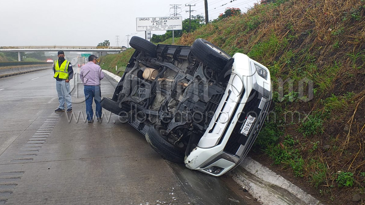 Córdoba.- Una camioneta Mitsubshi terminó volcada y con su conductor aturdido por el golpe, luego de que esté perdiera el control al momento de circular sobre el kilómetro 299 de la autopista México-Veracruz a la altura del trébol de Amatlán, lo cual provocó la movilización de los grupos de auxilio así como también de las autoridades de la Guardia Nacional quiénes llegaron para tomar conocimiento y proceder al retiro de la camioneta accidentada.