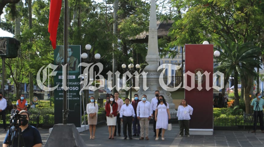 Córdoba.- Autoridades municipales llevaron a cabo un acto cívico para conmemorar el 150 Aniversario Luctuoso del Benemérito de las Américas, Benito Juárez. Encabezado por el presidente municipal Juan Martínez Flores y en presencia del cuerpo edilicio, la bandera fue izada a media asta en señal de luto por la regidora segunda Isamar Balderas Flores.