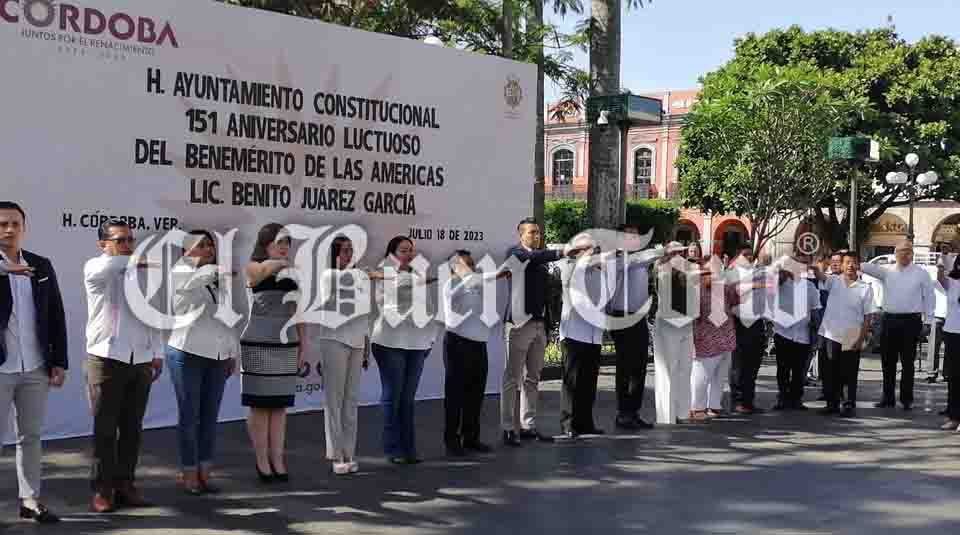 Córdoba.- En un emotivo acto cívico encabezado por autoridades municipales, se llevó a cabo la conmemoración del 151 aniversario luctuoso del benemérito de las Américas, Benito Juárez.