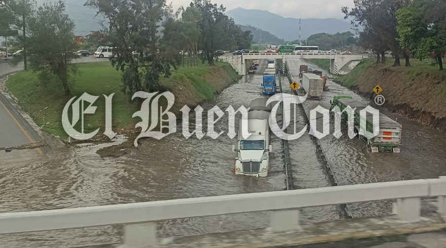 Orizaba, Ver.- Por segundo día consecutivo la autopista 150D en el tramo del kilómetro 276+100 a la altura del Trébol de Escamela, continúa con el anegamiento.