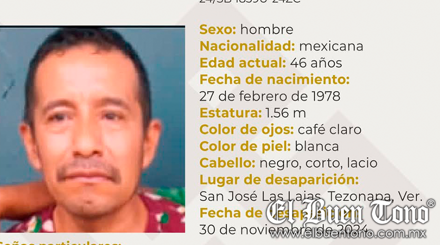 Tezonapa, Ver -Un individuo identificado como Gabriel Villalobos Caricia, de 46 años de edad, vecino de la comunidad San José Las Lajas, esta reportado como desaparecido desde el pasado 30 de noviembre del año 2024.