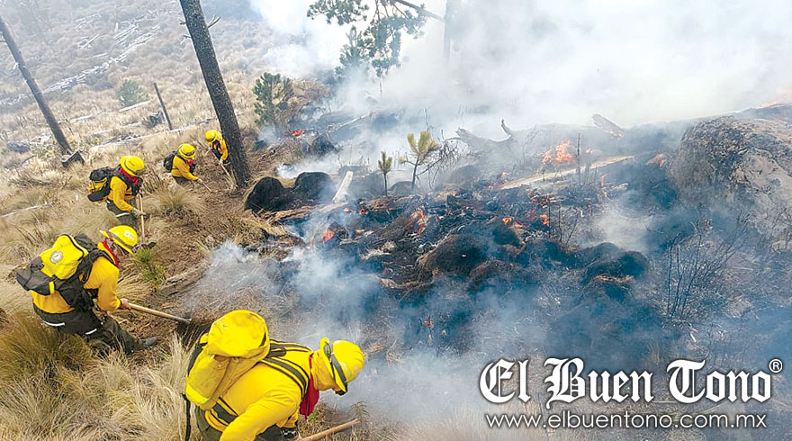 El fuego comenzó la mañana del domingo y hasta el momento brigadas de Conafor, Sedema, Conanp y voluntarios continúan trabajando en la zona para controlarlo.