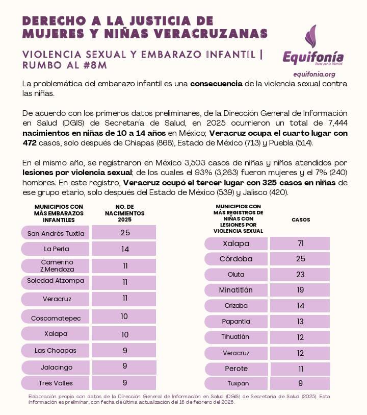 En rueda de prensa detallaron que solo Xalapa, con 71, supera a Córdoba. A nivel nacional, Veracruz se posiciona como el tercer estado con más registros de este tipo, con 325 niñas víctimas, lo que representa el 9.9% del total de casos en el país.