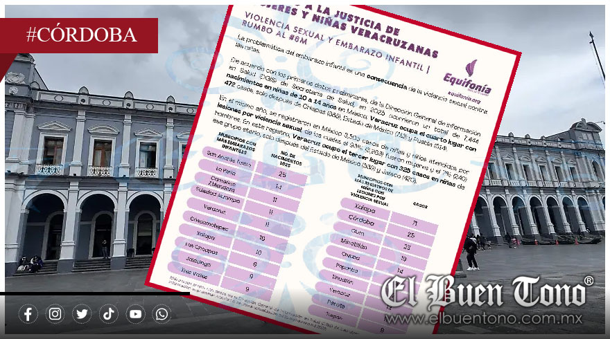 En rueda de prensa detallaron que solo Xalapa, con 71, supera a Córdoba. A nivel nacional, Veracruz se posiciona como el tercer estado con más registros de este tipo, con 325 niñas víctimas, lo que representa el 9.9% del total de casos en el país.