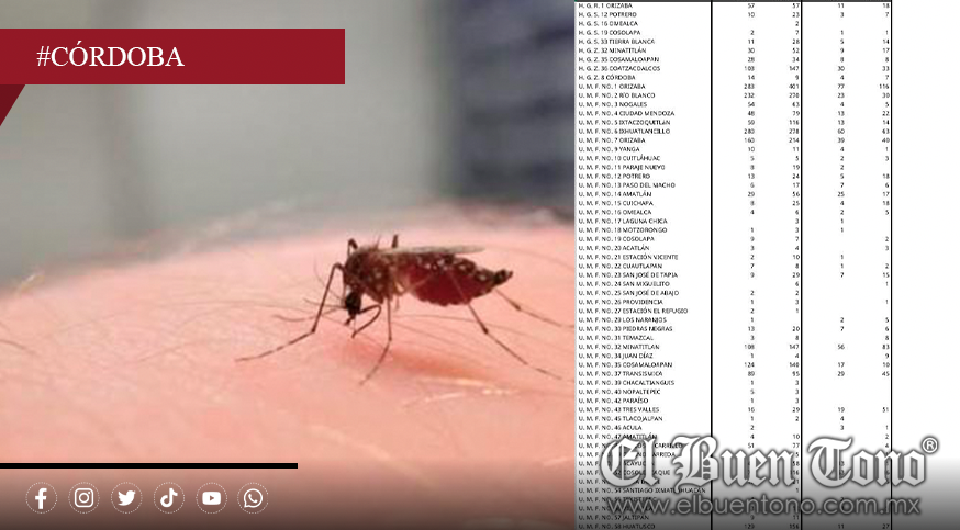 Córdoba, Ver.- Córdoba es epicentro crítico de la epidemia de dengue. Los datos oficiales del Instituto Mexicano del Seguro Social reportan que mientras en todo el año 2024 las unidades médicas de esta ciudad reportaron 2,231 casos de trabajadores que requirieron incapacidad temporal a causa de la enfermedad, en apenas los primeros ocho meses de 2025 la cifra ya alcanza los 651 contagios confirmados.