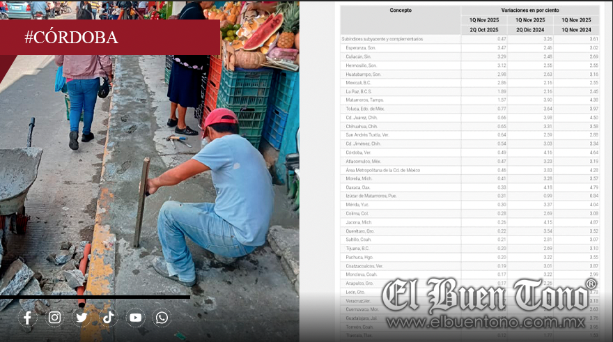 Córdoba, Ver.- Mientras las autoridades celebraban la designación de Córdoba como Pueblo Mágico, los cordobeses enfrentan una realidad menos mágica y más cruda: su ciudad se ubica como la tercera más cara del país, con una inflación anual del 4.64%, solo por debajo de Jasso, Michoacán (4.87%) y Oaxaca, Oaxaca (4.79%).