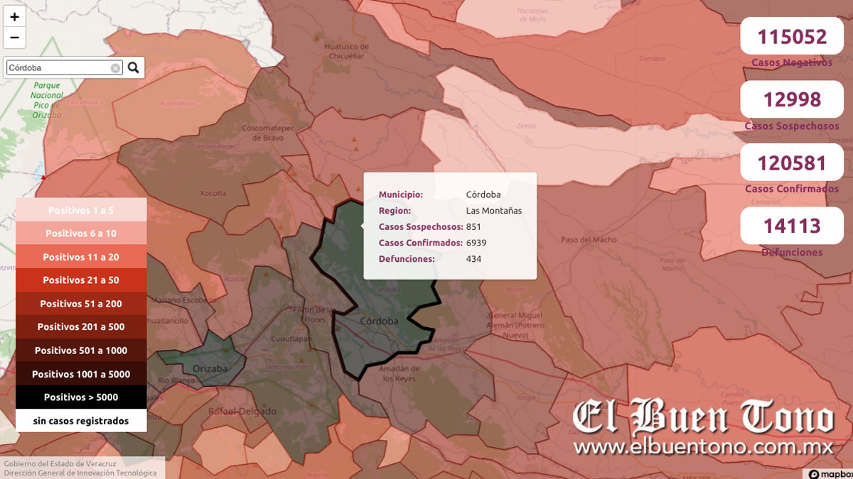La Secretaría de Salud de Veracruz informó que se registraron 120 mil 445 casos confirmados de Covid-19 en el Estado y 14 mil 087 han muerto, esto en el corte del 16 de octubre.
