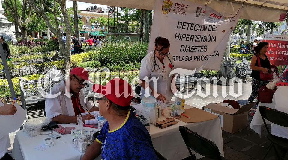 Córdoba.- En conmemoración del Día Mundial del Corazón, decenas de cordobeses aprovecharon la Feria de la Salud que se llevó a cabo de manera gratuita. El evento brindó a los asistentes la oportunidad de someterse a un chequeo general que incluyó mediciones de glucosa y presión arterial entre otros, así como la participación en cursos de primeros auxilios. Estos servicios esenciales fueron proporcionados por la Secretaría de Salud de Veracruz (Sesver).