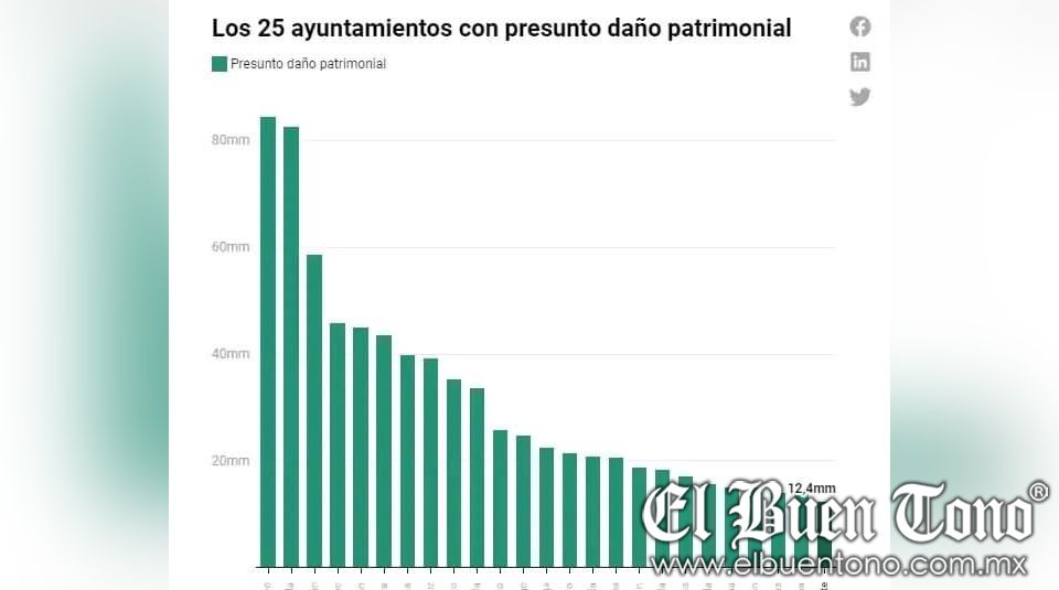 “Cosco” es el único municipio del partido Movimiento Ciudadano y que a nivel estado tiene el daño de 45.7 millones de pesos, principalmente por obras ejecutadas de forma irregular, por falta de permisos y licencias o en específico por validación de proyectos emitidas por la Secretaría de Infraestructura y Obras Públicas y que su alcalde José Luis Alonso Juárez no logró comprobar.