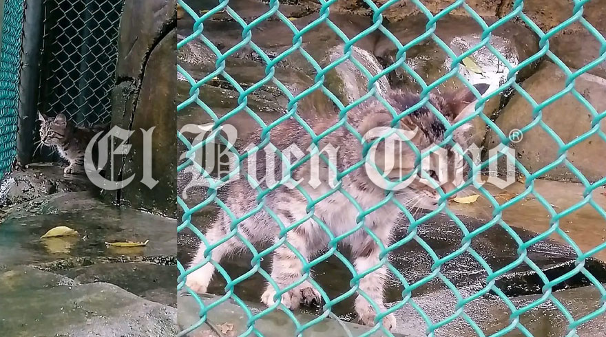 El pequeño felino, de apenas unas semanas de vida, fue avistado en la jaula sin que se sepa cómo llegó allí. No se descarta que alguien lo haya arrojado intencionalmente, aunque también podría haberse extraviado y terminado atrapado accidentalmente. El alambrado de la jaula es alto, lo que hace imposible que el gatito salga por sus propios medios.
