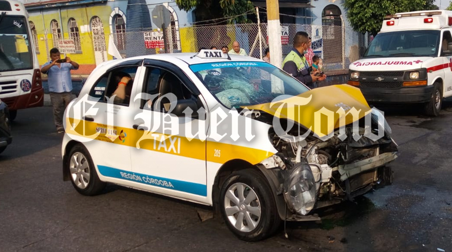 Córdoba.- Cuatro personas lesionadas, entre ellas dos menores de edad, movilización de los grupos de auxilio así como elementos de la Policía y Tránsito Municipal, fue lo que dejó el choque entre una camioneta Mitsubishi y el taxi número 205 del sitio ADO, debido a que uno de los conductores, al no respetar la luz roja del semáforo, provocó el accidente sobre el cruce de la avenida 5 y calle 10 en la colonia Centro.
