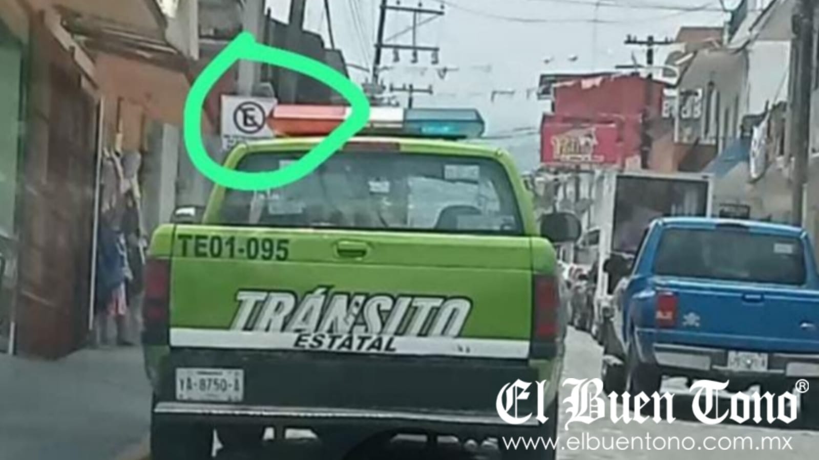 COSCOMATEPEC.- Los ciudadanos se encuentran desconcertados ante la aparente contradicción de la agrupación de Tránsito del Estado con sede en Coscomatepec, quienes, a pesar de ser responsables de hacer cumplir las reglas de vialidad, parecen ser los primeros en incumplirlas. Una reciente situación captada en el centro de la ciudad muestra a una unidad de esta agrupación estacionada en plena banqueta, justo debajo del letrero que prohíbe el estacionamiento.