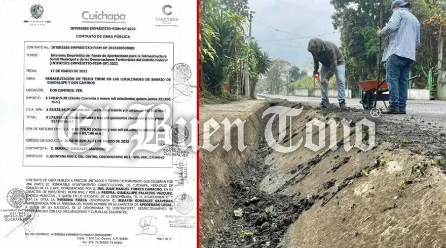 Bajo el número de obra 2023300520001 denominada ”Rehabilitación de Techo Firme en las localidades de Barrio de Guadalupe y Dos”, Cuichapa le dio el contrato a Serafín Gonzáles Saavedra quien durante sus funciones como alcalde de Coscomatepec se vio envuelto en diversas irregularidades.