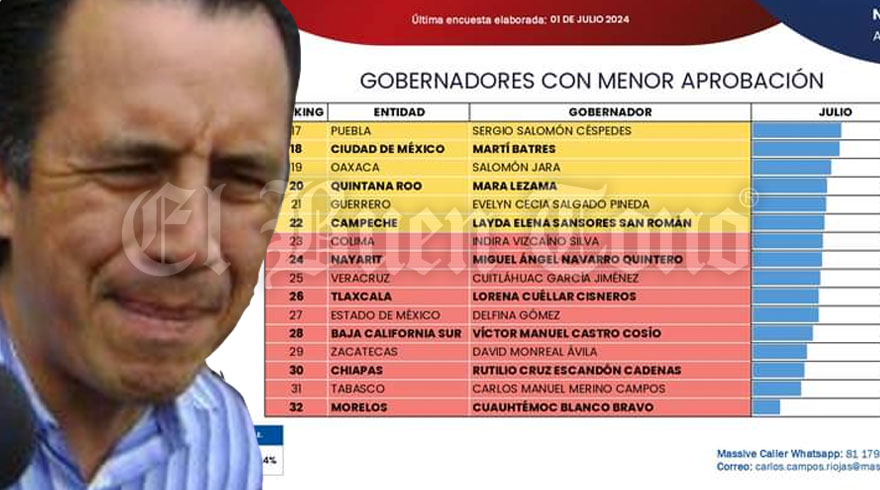 En la última encuesta con corte al 1 de julio, la consultora Massive Caller dio a conocer su medición mensual de gobernadores, en la que sitúa al de Veracruz como de los peores a nivel nacional.