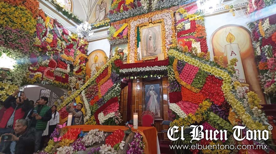 La Perla.- En la localidad el fervor a la Virgen de Guadalupe alcanzó su punto culminante cuando los habitantes adornaron su altar con más de medio millón de flores y frutas.