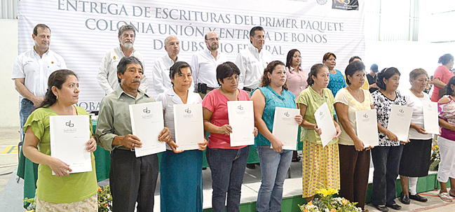 Córdoba.- Entregan autoridades municipales y federales escrituras a los habitantes de la colonia Unión, de Antorcha campesina.