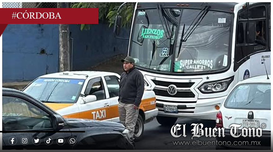 Córdoba, Ver.- La mañana de este miércoles se registró un choque entre un autobús de la línea 8 de Marzo y un taxi, sobre el camino que conduce a la calzada Morelos, percance que dejó únicamente daños materiales menores, sin personas lesionadas.