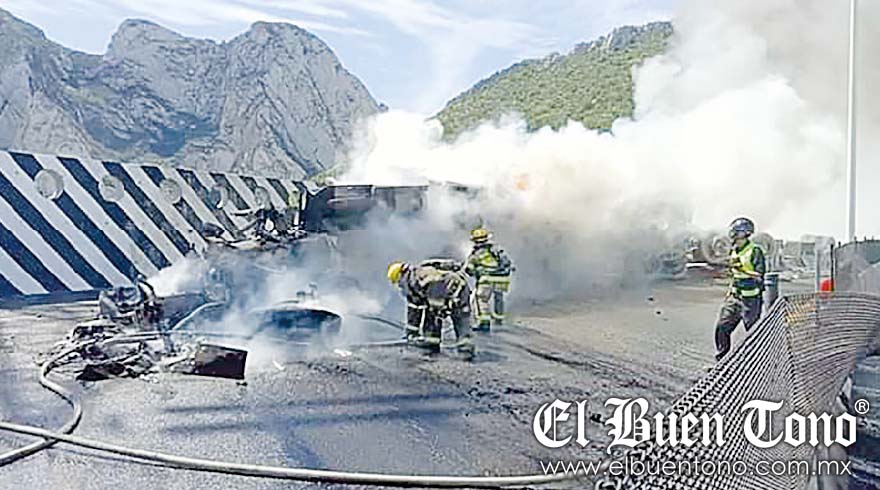 Los hechos ocurrieron la tarde del sábado, cuando un camión tipo nodriza circulaba por la autopista Saltillo-Monterrey, y el conductor no se percató de los trabajos de mantenimiento que se realizaban en la carpeta asfáltica.