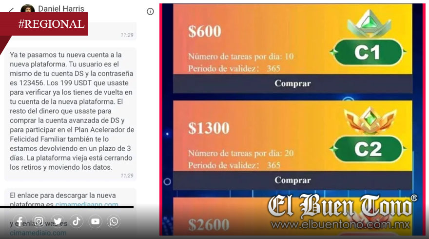 Entre las principales señales de riesgo detectadas destacan la exigencia de inversiones iniciales que en algunos casos alcanzaban hasta 50 mil pesos, así como la necesidad de reclutar a más usuarios para acceder a mayores “beneficios”. Este modelo colapsó a inicios de abril de 2026, cuando múltiples participantes denunciaron la suspensión de pagos.