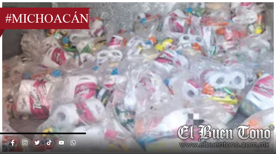 Los paquetes contenían productos básicos como papel de baño, galletas, té, dulces, frijoles y arroz. No se reportaron detenidos, y tanto la camioneta como los insumos quedaron bajo resguardo para las investigaciones.