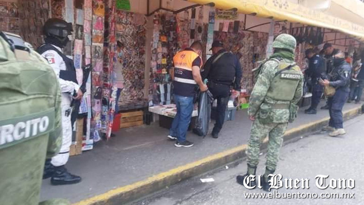 Huatusco.- Elementos de la Guardia Nacional, División Proximidad, en conjunto con Sedena, Policía Municipal y Protección Civil, tras recorridos lograron decomisar pirotecnia en el mercado Benito Juárez y en la Explanada Emiliano Zapata, en Huatusco. Fue alrededor del mediodía de ayer jueves cuando los efectivos realizaron recorridos en el primer cuadro de la ciudad, en las inmediaciones del mercado Benito Juárez y calles aledañas, logrando asegurar el producto que se expendía.