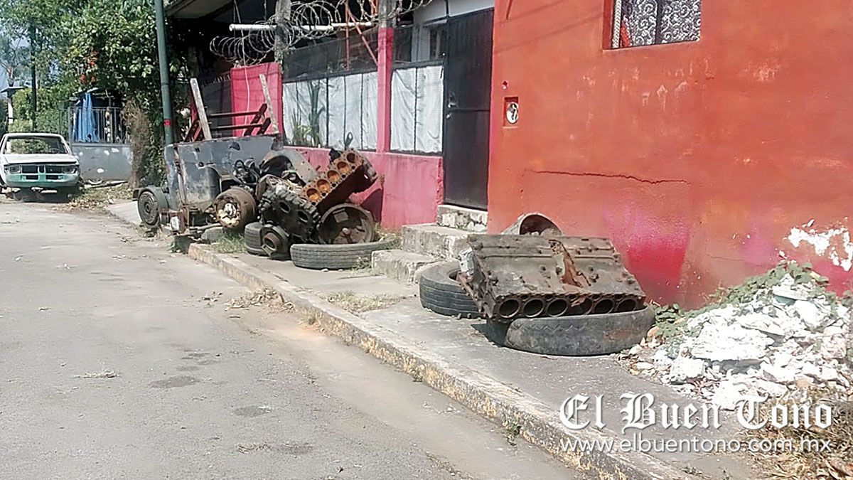 CÓRDOBA.- Vecinos de la colonia La Luz Francisco I. Madero, reportaron la presencia de enormes piezas automotrices y llantas que obstruyen el paso a los transeúntes en una de la aceras. Expresaron que los fierros podrían provocar accidentes graves, en caso de que alguno cayera sobre un menor o cualquier peatón que transite por el lugar.