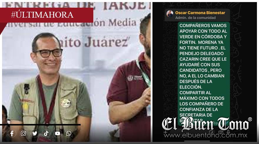 Trabajadores de la Delegación Regional del Bienestar en Córdoba denunciaron que Óscar Carmona Oropeza los está obligando a operar políticamente a favor del Partido Verde Ecologista de México, en un evidente uso faccioso del aparato gubernamental con fines personales y electorales.