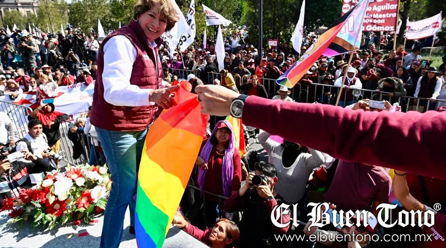 Antes de tomar la palabra Delfina Gómez, el líder de Morena, Mario Delgado, pidió a la ciudadanía no confiarse y recordó que hace seis años les robaron la gubernatura.