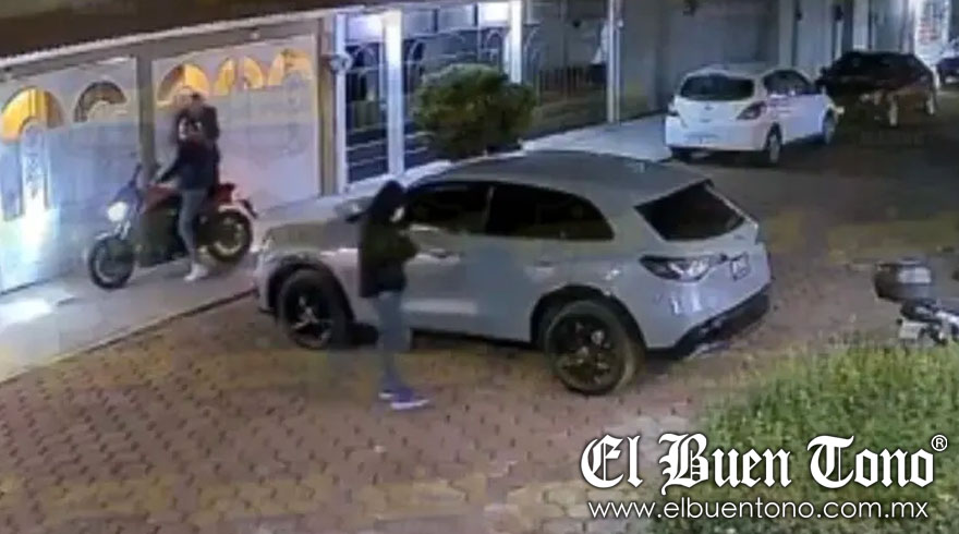 Los hechos ocurrieron en calles de la colonia San Carlos, donde, tras obtener las llaves del vehículo blanco, uno de los ladrones intenta arrancar la camioneta, pero no lo logra. En un acto de desesperación, su cómplice se apresura a ayudarlo, logrando finalmente encender el motor y emprender la huida.