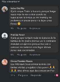 “Espero que hayan retirado toda la basura, porque luego solo la vuelven a tirar cerca de la tumba de mi mamá y no podemos ni pasar”, reclamó una vecina. Otro habitante fue más directo: “Ojalá ya hayan quitado la basura de la tumba de mi padre; si no, tendremos que exigirles otra vez, porque en todo el año no hicieron nada”.