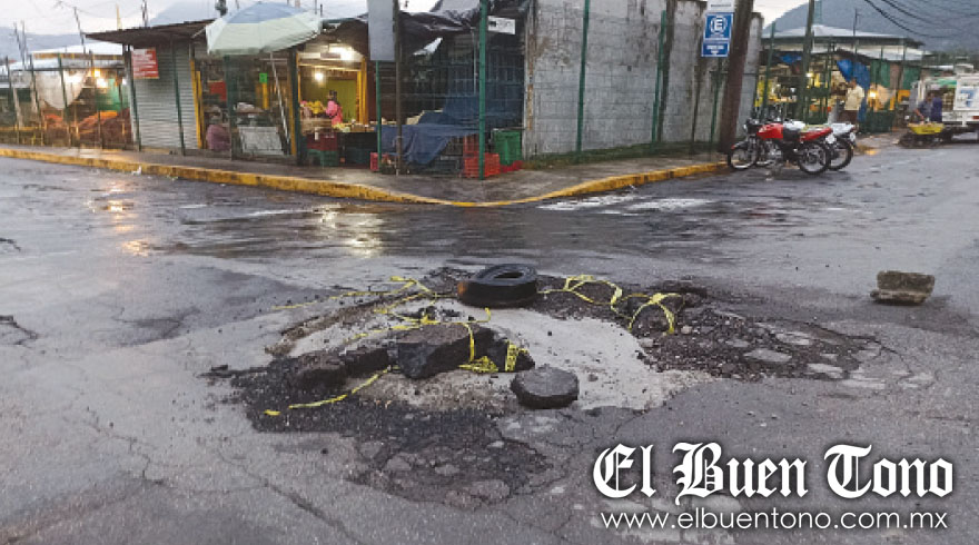 También mencionaron que prácticamente abarca toda la zona, y el tránsito de vehículos debe de ser lento si no quieren dañar sus unidades, esto afecta la vida comercial de la zona y “que de por sí ya es delicada”, indicó Marcelino, quien tiene su puesto de naranjas en esa cuadra, por lo que piden pronta solución.