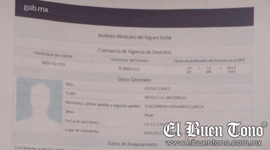 Sin embargo, al acudir al IMSS para continuar con su diálisis le informaron que no se encontraba dada de alta, por lo que acudió a la Metropolitana para arreglar su situación, pues sabía que no contaba con afiliación al Seguro Social, aunque dijo que en una ventanilla le informaron que sí estaba dada de alta.