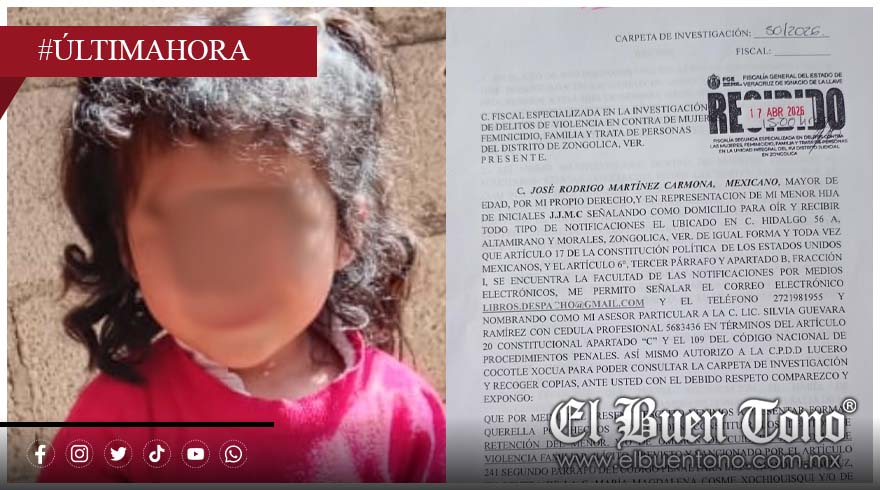 Zongolica, Veracruz.– Una denuncia formal por la presunta comisión de delitos relacionados con la sustracción de una menor, omisión de cuidados y violencia familiar fue presentada ante la Fiscalía General del Estado, lo que derivó en la apertura de una carpeta de investigación en el distrito judicial de Zongolica.