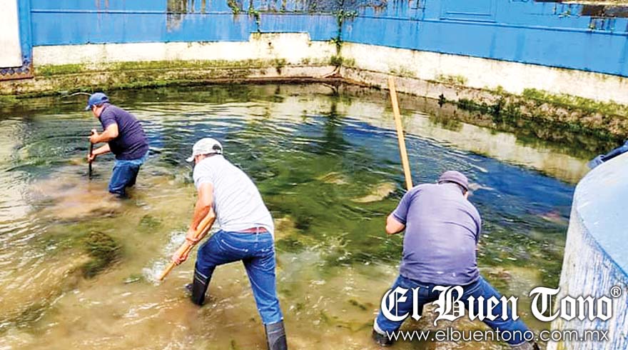 En el nacimiento Tlacuapa se realiza la limpieza de las cajas de agua que llegan a subcajas en Cosco y Tomatlán y abastecen a más de 30 mil habitantes de ambos.