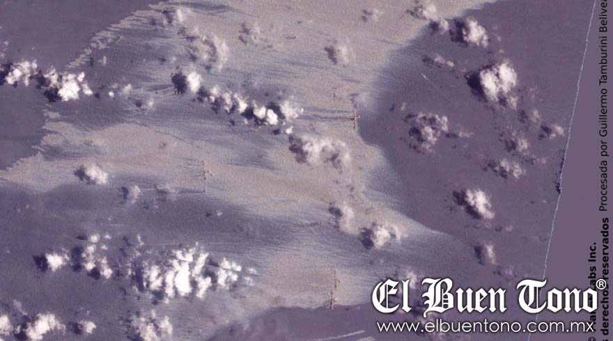 A través del procesamiento de imágenes en la zona cercana a los campos petroleros de Ek Balam, se ha podido determinar la ubicación geográfica del contorno de la mancha de hidrocarburos y estimar su área de cobertura.