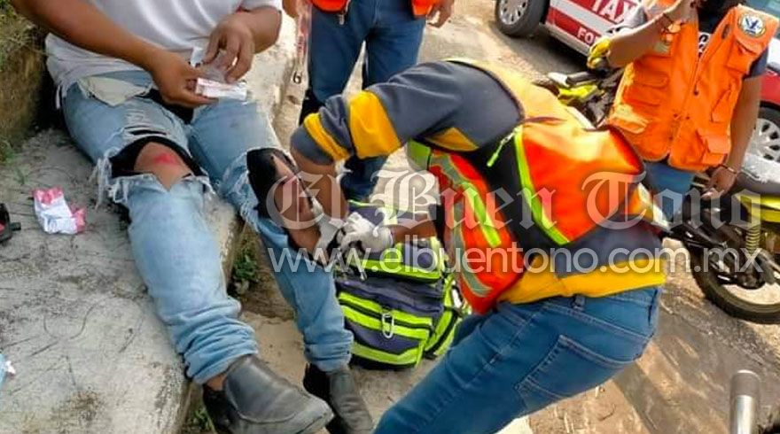 Fortín.- Un joven Motociclista resultó con abrasiones y laceraciones en el cuerpo luego de que derrapara cuando circulaba en su Motocicleta Honda-Tool, sobre la carretera federal Fortín Cuautlapan. Al lugar arribaron elementos de grupo de Águilas Negras con base en Fortín Quiénes lo valoraron y le brindaron las primeras atenciones. posteriormente El joven Motociclista se retiró por sus propios medios a un hospital para ser atendido.